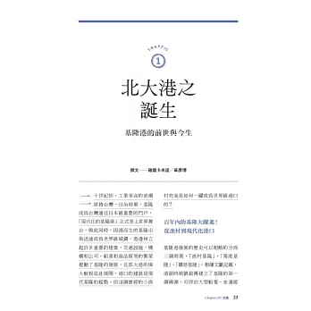 本書透過八個章節,為您呈現基隆最道地的「海」味。無論是日常交通、移民、百工、居住、飲食、娛樂、文化,還是傳說故事,都與基隆港遙相呼應。由熟悉基隆歷史的作者,透過獨特的在地故事和簡潔的文字,帶領讀者發掘基隆不為人知的一面。
