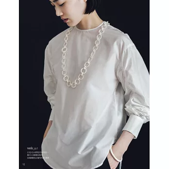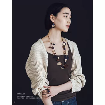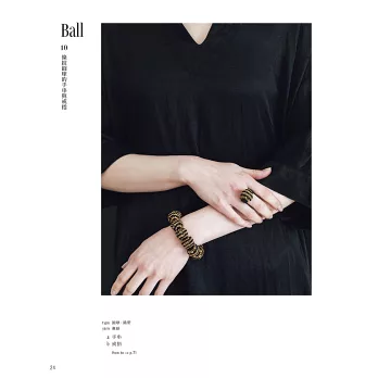 正因為構成元素單純,反而擁有更廣闊的變化空間,即使照著書上作出一模一樣的零件,最後的成品依然可以洋溢個人特色而截然不同:圓球要穿在正中央或邊緣?零件之間要遠一些或緊密些?鍊長可以量身打造,加針延長或減針縮短;零件也能隨意增減,營造分量感或輕盈感。