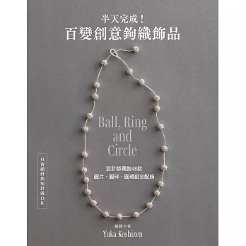 作者以「圓」為主題,設計出僅以短針即可製作,大小不一的圓球、圓環和圓形織片等圓形零件。再以鎖針&繩編,製作繩鍊串連組合,並且盡量不使用金屬配件,改以伸縮活結或鉤織的OT釦、圓球作為釦頭。