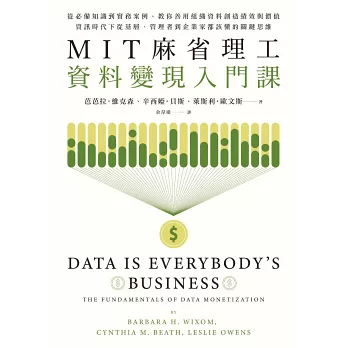 不過,改變可以從少數人開始。《MIT麻省理工學院資料變現入門課》是一本不可或缺的指南,你的組織需要像你這樣的人來展開或持續推動這項工作,幫助其中的每個人理解數據變現、對其產生興趣,並投入其中。