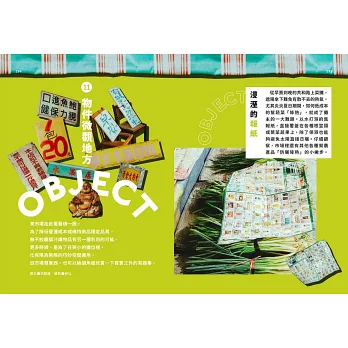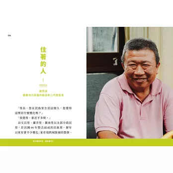 延續前兩本《誌村鑑》的「Object 物件微觀地方」單元,本輯採集置放於攤位邊的平凡物件,捕捉其中隱含著各家攤主的智慧;「People 此曾仍在的人們」單元則訪問到真實身分為民族里里長的「劉里長火雞肉飯」現任老闆劉宗源,由他如何承繼亦擔任多年里長的父親的使命說起,以及他自小於市場內成長的故事。新明津魚丸店三代潘麒宇和地方品牌環時好室的陳怡秀,則書寫自身於創業、返鄉之後與地方建立起的新關係。