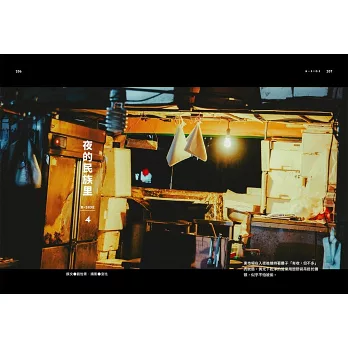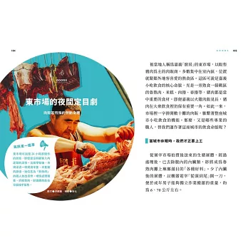 民族里最為人所認識的,是開市後熱鬧喧騰的一面;然而一個地方的運作,當然不止於做生意,更多的日復一日就潛藏在散市後的B面。「Timing 時刻」透過《華麗計程車行》影視原著作者陳俊文之眼,帶讀者如乘客般由不同街角駛近民族里;「B-Side」單元則抓取同樣於民族里中佔地廣大的民族國小,以行動課帶領孩子由建築、歷史等不同角度認識市場,並由跨國飲食對照的角度,拉出認識市場中粉腸、醬菜攤的另個軸線,找出與韓國飲食間的隱藏連結……