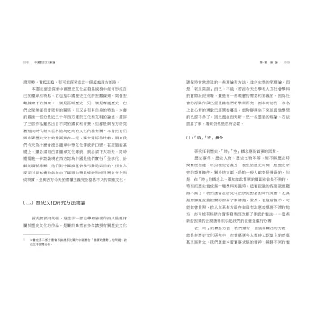當然,作為一位中國歷史文化研究和教育者,在明確了社會的改革方向和潮流後,其最重要的工作是在參與整個社會的改革潮流時,應把更深入對中國歷史文化進行研究,將成果貢獻社會。所以,筆者在本書的序言中,首要的任務是向讀者說明本書的基本結構和內容,解釋書中各大部分的互相關係。筆者希望能把學習和掌握中國歷史文化最基本的內容和方法作重點的鋪陳,並從我們國家目前的文化狀況出發,提出一些要特別關注的問題,克服影響我們樹立文化主體性概念的因素,為中華的文化復興作一點努力。本書若從結構方面看,分四大部分:一、緒論;二、中國歷史文化的宏觀線索;三、中國地域研究篇;四、西方幾部有關文化研究著作的述評。