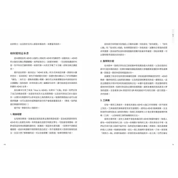 1.開頭故事:作者用最平實、幽默而溫暖的文字,誠懇描述自己從小到大與ADHD症狀相關的生活經歷。