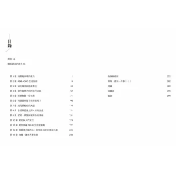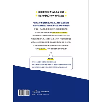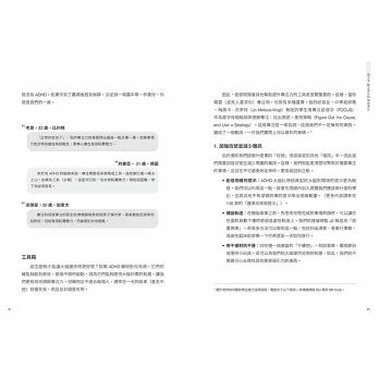 •全書排版忠於原著ADHD友善設計:運用「閱讀捷徑」、留白、簡短分段等設計,為ADHD大腦量身打造易於閱讀、抓取重點的內容。