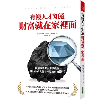 ★光是保守估計,就約有1300萬人聽過康維爾的演講,《有錢人才知道,財富就在家裡面》出版至今,譯成多國語言,傳遍了全世界。