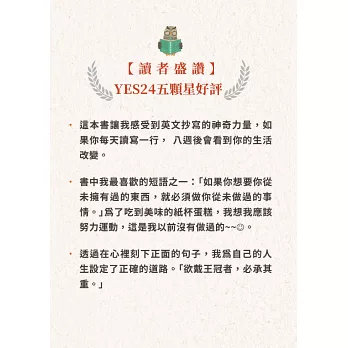 ˙這本書讓我感受到英文抄寫的神奇力量,如果你每天讀寫一行,8週後會看到你的生活改變。
