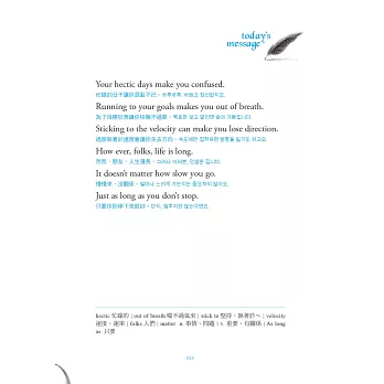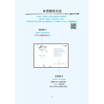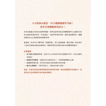 這是一本兼具實用性與啟發性的英語學習書籍,適合想要提升英語能力,也希望在生活中獲得更多正能量的朋友。