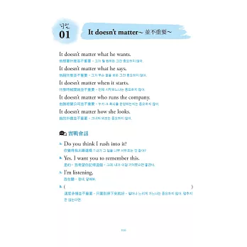 ★精心挑選40個句型:每篇包含精采短文+常用句型+5個造句+實戰對話,在你因負能量堆積而感到疲倦時,瞬間扭轉情緒。