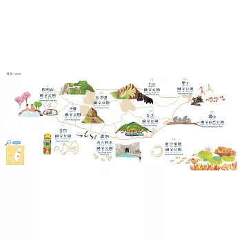 陳又凌在《台灣最美的地方:國家公園地圖》這本書裡,以地圖的形式,呈現出台灣十座國家公園的人文與自然特色,讓讀者一看就了解台灣地形與自然特色!