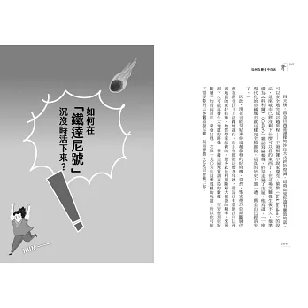 無論是不是災難片愛好者,我們都聽過行星撞擊地球、龐貝古城覆滅、鐵達尼號沉沒這些史上最危險的災難時刻。面對這些絕世浩劫,本書以專業而不失詼諧的筆法教你如何在大難臨頭時全身而退,誠摯推薦給熱愛時空冒險的你!――時空偵探、歷史作家/宋彥陞