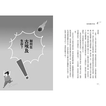 但不必擔心,只要帶上這本書,不管是恐龍的追殺還是隕石的撞擊,不管是火山突然爆發還是疫情張狂肆虐,就算生存的機率再小,你都能在驚心動魄的當下,知道要去哪裡、該做什麼,順利躲過一劫。