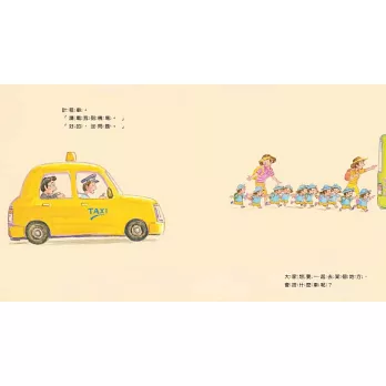 -故事的開頭跟結尾非常棒!一開始從孩子熟知的走路、跑步、騎腳踏車……等人們常用的交通方式,延伸到「車子」這種交通工具。結尾告訴孩子:在遙遠的將來你也會去工作。雖然孩子們長大後可能不會記得這件事,但我仍覺得能為未來播下種子。─東京1歲男孩的媽媽もちくらげさん