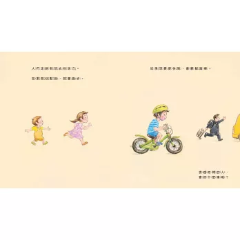 有人走路到想去的地方;如果想快點到,就會跑步;如果想要更快到,會騎腳踏車;很趕時間的人,他們會搭計程車!