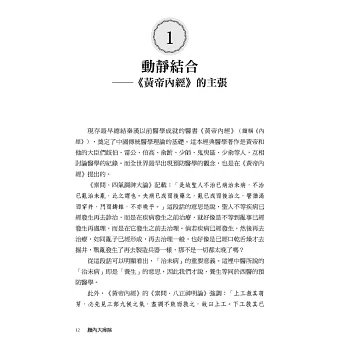 五千年前,老祖先即在《黃帝內經》中主張,唯有「動靜結合,形神共養」,人體達到平衡協調就能常保健康。追求平衡,人需要運動,也要適時靜養;食物能入口,更要及時順利排出;唯有挑選適合體質的飲食,方能相助互補。