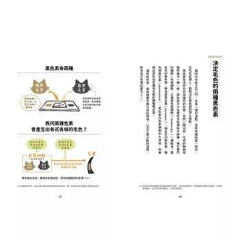 ▶貓咪們的花色真的很神奇~我養了兩隻貓,奇怪的是,牠們的花紋和牠們的貓媽媽完全不同。讀完這本書後,我才解開了一些謎團。