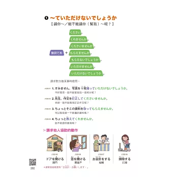 句型是句子的骨架。掌握句型骨架後,只要填入不同的單字,就能夠在各種情境用完整的日語說出想說的話。不管是想要表示意見、請求協助、闡述想法、補充舉例,各種N4-N3必會的句型,都能一次學會。