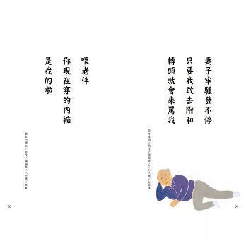 時而嘲笑自己的病痛、和老伴相看兩相厭的日常;