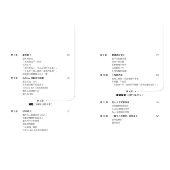 作者不僅縱向爬梳輝達的成長,也橫向帶出同時間的晶片巨頭英特爾、3dfx、SGI視算科技等的競爭,與微軟、蘋果、台積電的合作……整體回顧30年科技發展,科技相關業者必讀。