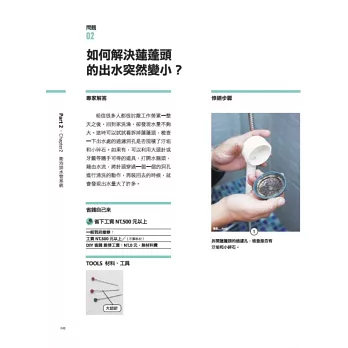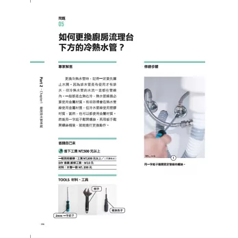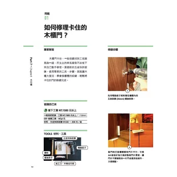 詳述工作的分解步驟和完工成果,讓完全沒有宅修經驗的新手也能輕鬆應付,成為家居必備的工具典藏書。