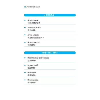 ★本書8大分類,一網打盡法國人日常生活各種短語!