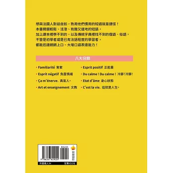 《即問即答生活法語》精選超過1400句法國人最常使用的短語,直接、好記、生活化、實用性高,不用記繁複的文法與動詞變化,輕輕鬆鬆就能與法國人對話自如!