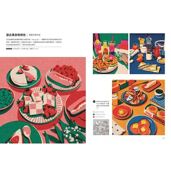 書中以50位插畫家,逾100以上案例,提供大量範例激發靈感,其中,日本當代插畫有傳統出發、簡約力量、現代極致3大風格,這3大風格各有哪些出色的代表人物,如何從他們的合作客戶,看出品牌定位?他們的作品如何構圖?如何配色?配色的CMYK數值是多少?