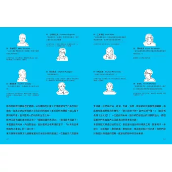 看過大量的插畫家作品後,書末收錄與杉崎真之助、關本明子等8位知名設計大師的深度對話,栗林和夫說:「當代插畫總是為我們提供新的價值和看待事物的方式。」工藤青石為何說插畫家鈴木英人、設計師早川良雄,是劃時代意義的創作者?他們以各自的經驗,分享他們的理念,日本傳統的啟發,以及如何用插畫設計,做出突破性的日本設計。