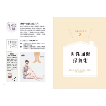 本書是針對常見小毛病做介紹,零基礎也能上手。內容包含全家人四季養生調養、兒童小病保健、銀髮族養生、男性健體、女性美顏抗老化、上班族紓壓放鬆等等,應有盡有。接著提供適當的舒緩改善方法。涵蓋經典的實用穴位、應時令的食療,可以信手拈來,安全有效地調理身體,是一本適合全家人的養生寶典。