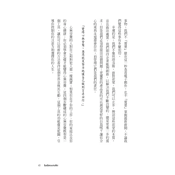 我很期待這本書上市,我想要跟讀者好好分享這本書的精華,能在兼顧效率的同時,又不讓心理失速,能過自由且有意義的生活。──洪仲清/臨床心理師