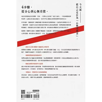 在這個時代心無旁騖是個不可或缺的技能。如果你跳過這本書不讀它,那麼後果自負!我的建議是:讀它。實踐它。重複這兩個動作。──葛瑞格.麥基昂(Greg McKeown)/《少,但是更好》作者