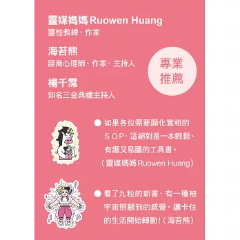 ‧看了九粒的新書,有一種被宇宙照顧到的感覺。讓卡住的生活開始轉動!(海苔熊)