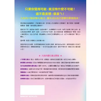 沒有難以入口的用語,九粒以招牌的幽默活潑風格、淺顯易懂的文字和貼近生活的舉例,引領你輕鬆實踐顯化法則,收到你向宇宙訂的貨!