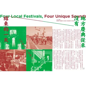 特輯總計訪談邀約16個地方慶典的策畫團隊,以深度訪談、對談和現場交流等方式,蒐羅各個慶典的心法,其中更以「如何辦一場地方慶典」為題,整理成「組織篇」、「田調篇」、「志工篇」和「宣傳篇」等實用環節Know How,瞭解一場有趣好玩的活動背後該如何運作。