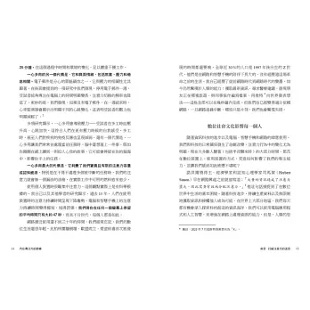 這本書涵括了葛洛莉亞.瑪珂博士數十年來研究網路興起如何影響個人生活的精采旅程。如果你對個人幸福和如何在數位時代獲得能動性感興趣,那麼你需要讀這本書。——蘇珊・大衛(Susan David),《情緒靈敏力》作者