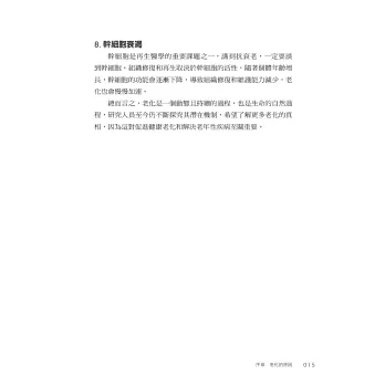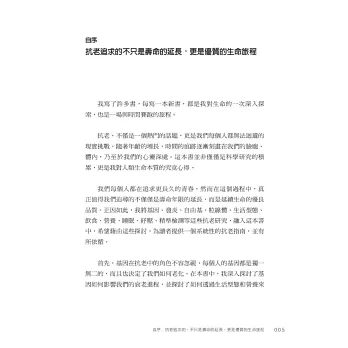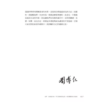 在本書中,劉博仁醫師深入分析造成老化的原因,找出各種可能加速老化的生活習慣,剖析老化對身體造成的影響,並以每天都可輕鬆實踐的方式,陪伴大家對抗老化。