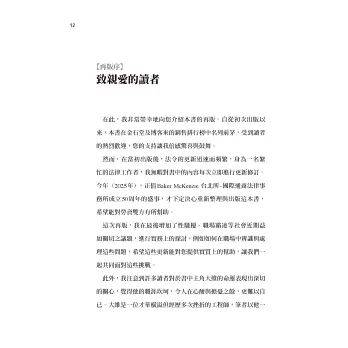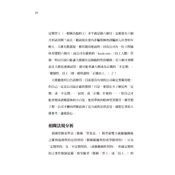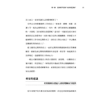 在解答各種形形色色的勞工問題時,作者在每篇文章中皆從勞工的訴求及公司人資部門的處理兩個面向,直接而明確地提供法律意見及律師叮嚀,並摘錄相關企業人的心得與建議。綜觀本書,可說是一本包羅萬象的企業勞工寶典。
