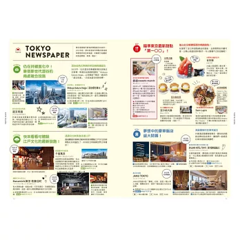 ◆東京都最新設施+人氣景點+散步路線:哈利波特影城、澀谷櫻丘町、東急歌舞伎町塔、共享空間SHARE LOUNGE、豐洲市場千客萬來、銀座甜點sweets march、代官山、下北澤、神樂坂、谷根千、築地、清澄白河、高尾山、迪士尼度假區、吉卜力美術館、藤子不二雄博物館、江戶東京博物館等,盡覽無遺!