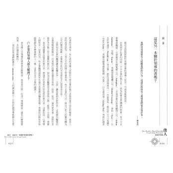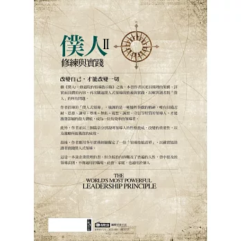 此外,作者並以三個篇章分別說明領導人的性格養成、改變的重要性,以及激勵所能獲致的成效。最後,作者應用多年實務經驗擬定了一份「領導技能清單」,以確實協助讀者評估自身狀況、實踐僕人式領導。