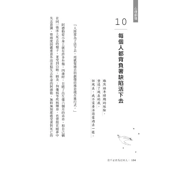 「記憶或許並非事實的原貌,而是那些我願意接受的片段堆疊。自己的傷痛,最終也許能透過愛自己、理解自己、包容自己而得到治癒。這是一本基於阿德勒心理學,帶來溫柔慰藉的書。」