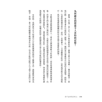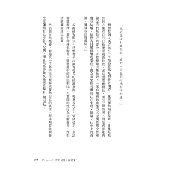 首先分析與他人比較的各種背景,包括自卑感、優越感、認可等情緒;再進一步探究上述情緒與生命初期記憶有何關聯,以及記憶如何影響我們成年後的情感表現與思維模式;接著細談人際與社會互動,以愛情、家庭為題進行論述;最後進入實踐階段,將自卑轉化為成長的力量。
