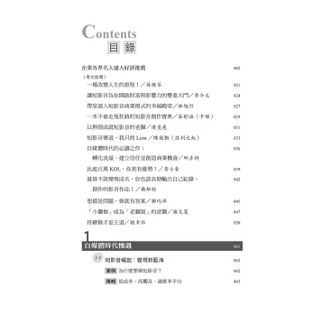 本書記錄短影音創作者最新實戰案例分析,提供最有用的應用策略,並結合線上課程提供的短影音變現心法及最實用工具,知識全面應用。