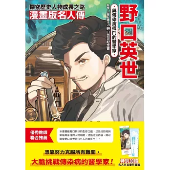 野口英世年幼時,因左手嚴重燙傷而行動不便。長大後,他接受了手部手術而感受到醫學的偉大,並立志成為醫學家。後來,野口英世憑靠過人的行動力以及努力,成為活躍於世界舞臺的醫學家,展開與傳染病搏鬥的人生。