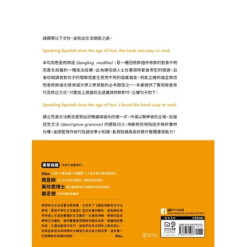 學習英文文法其實沒那麼難,尤其有了《徹底理解英文文法原理:鞏固中學生文法概念》這本好書的幫助,更能幫助我們快速上手這些難懂的文法觀念。本書用清晰、簡單的語言解釋文法重點,還有豐富練習題幫你驗收成果。最讓我訝異的是,它還涵蓋寫作技巧,使我們在英文寫作上更有信心。如果是希望在短時間內大幅提升英文能力的同學,這本書一定能帶給你滿滿的成就!──Alex│IG破12萬追蹤人氣講師17.5英文寫作教室創辦人
