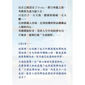 秀雅開始好奇,莫非人生中真的會有另一片風景,能夠打破「生命限時」──
