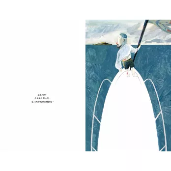 作者盧心遠精心編排了一個流暢且富有詩意的視覺饗宴,探索咖啡館老闆阿丹和水手阿奇兩個截然不同的生活環境。每一個跨頁都對比了阿丹粽色調、在陸地上的規律生活,以及阿奇藍色調、在海上的自由生活。盧心遠以巧妙且優雅的負空間運用,為作品注入了節奏感,使視覺效果更加流暢。――紐約時報、紐約公共圖書館