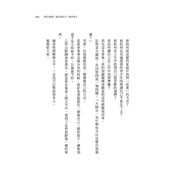 每個生命的經驗都有其珍貴之處,《坐霸王車的男孩》的作者,在不同歧路中,父母離異、中輟等,在艱難困境中,做出有價值的選擇,我願稱為「影響力」。勇敢、溫暖的文筆,讓我們相信、令我們看見:你永遠有機會,有能力做出選擇,做出改變,成為你想成為的人,誠摯推薦!