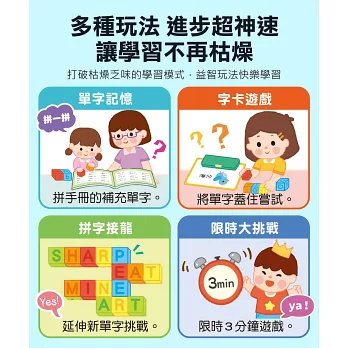 透過不同的英文字母積木,讓孩子動手反覆操作,遊戲中學習英文!