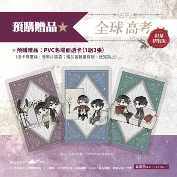 4. 預購贈品的PVC透卡無覆膜,但會單片包裝,卡片上若有些微磨擦痕跡為出廠時的正常現象,不視為瑕疵。