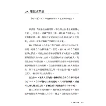 這些商業智慧不僅適用於經商,也可應用於日常生活和工作中。書中提到的理財原則、談判技巧、機會意識等,對每個期望提升自我的讀者都大有裨益。──亞洲提問式銷售權威 林裕峯